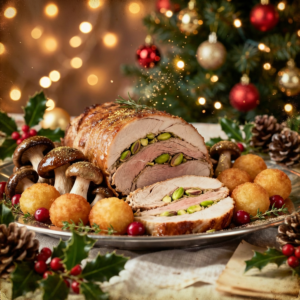 Eendballotine met pistache, bospaddestoelen, aardappelkroketjes € 26,20