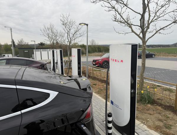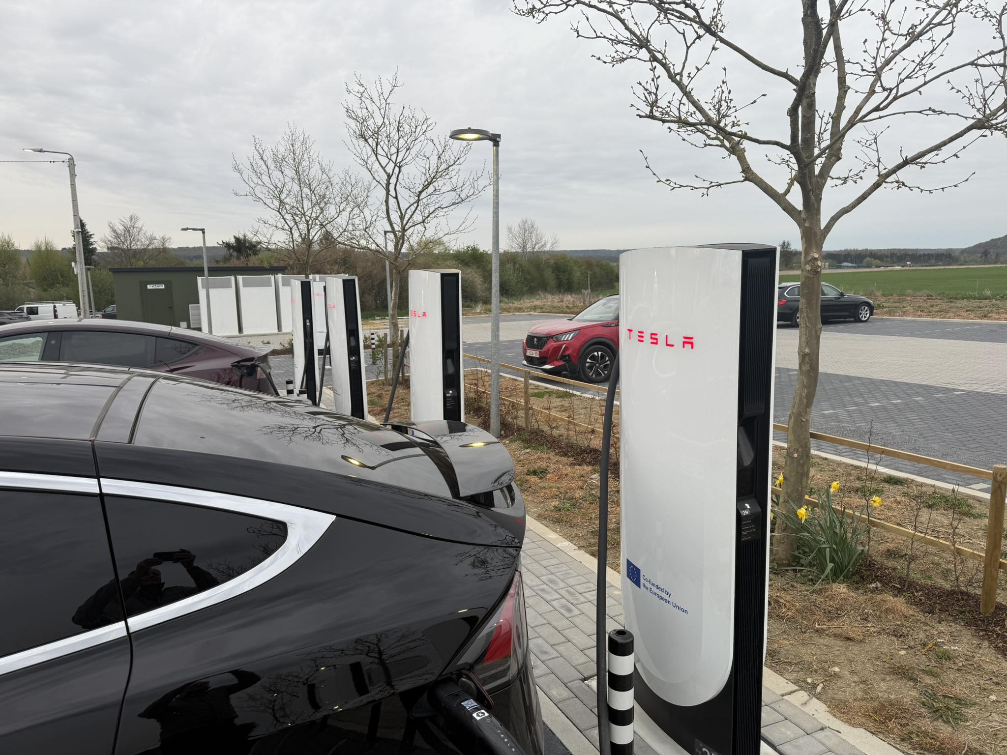 Onze parking is nu uitgerust met 16 ultrasnelle Tesla Supercharger-laadpalen - max. belastbaarheid 2000 kVA